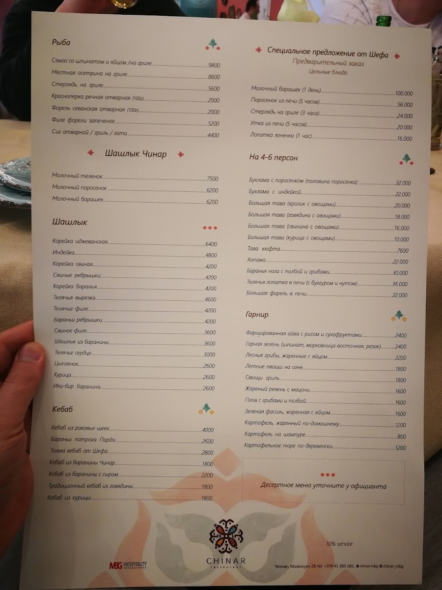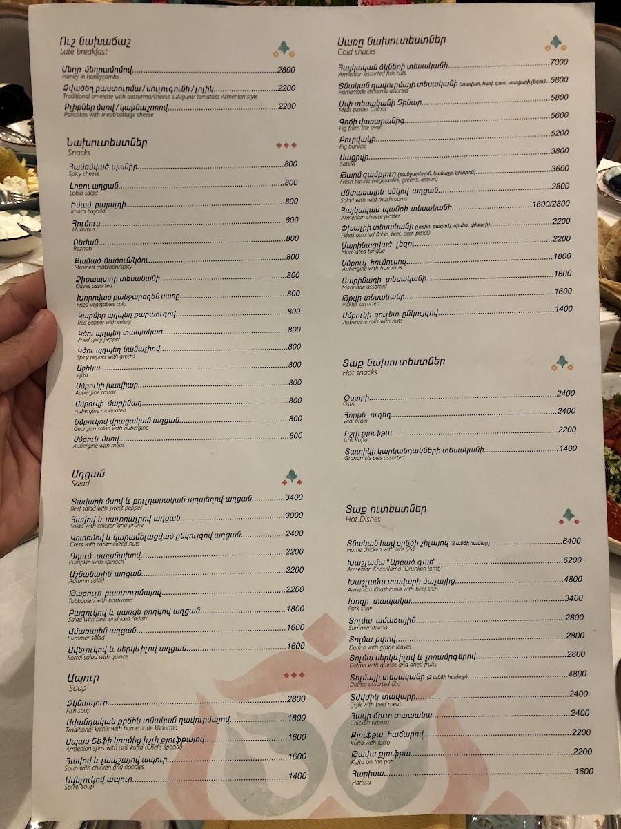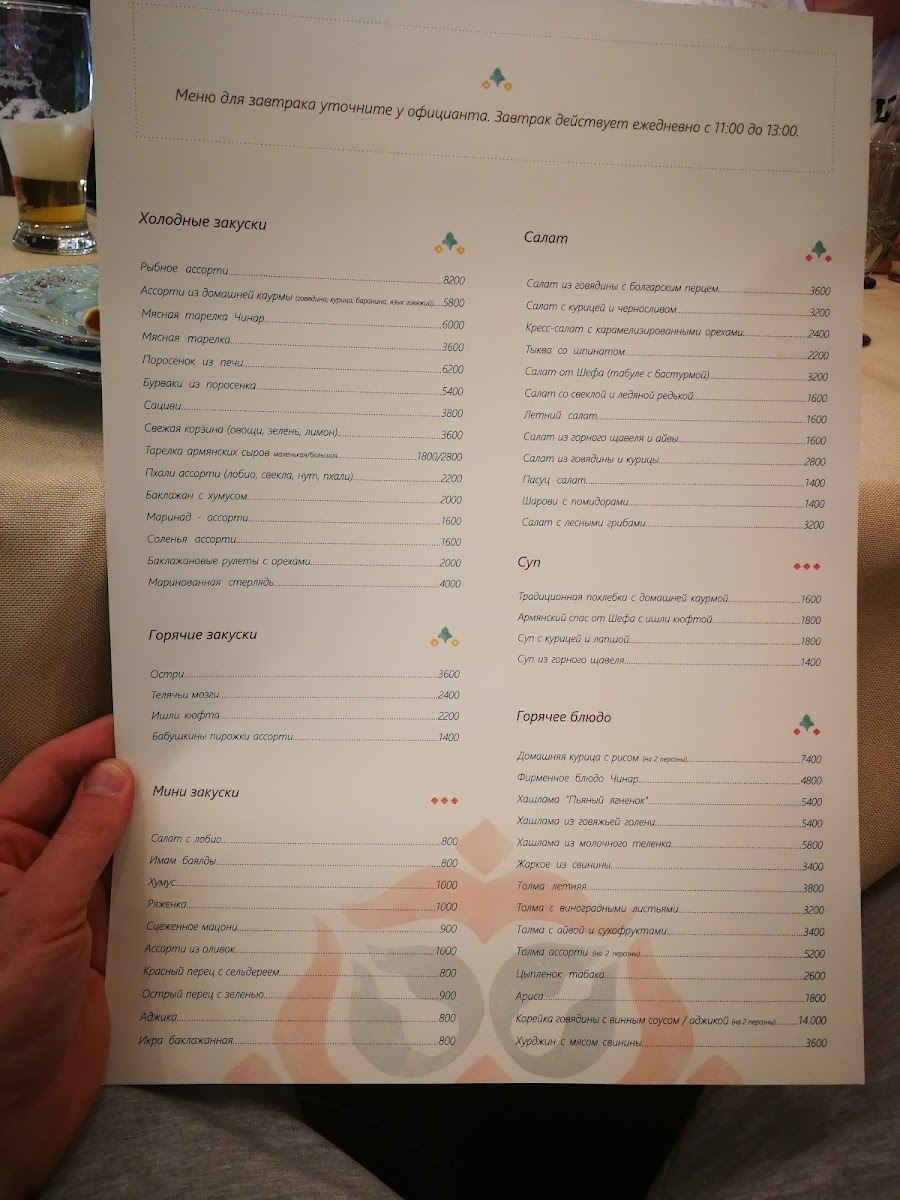 Chinar Restaurant on 28 Moskovyan Street in Yerevan offers a menu that perfectly balances traditional Armenian flavors with refined presentation. The standout dish, Bughlama, showcases tender meat and vegetables cooked slowly to meld rich, hearty flavors that linger pleasantly on the palate. Alongside this, the menu features a variety of well-crafted appetizers, fresh salads, and delicate soups, each thoughtfully seasoned and presented. The combination of generous portion sizes and carefully curated ingredients ensures that every bite is both satisfying and memorable. Complementing the main courses are subtly flavored side dishes and locally inspired accompaniments, providing a complete dining experience that reflects the essence of Armenian cuisine. Overall, the menu at Chinar Restaurant emphasizes authenticity and quality, leaving diners with a lingering appreciation for the depth and richness of each dish, with Bughlama standing out as a true highlight.